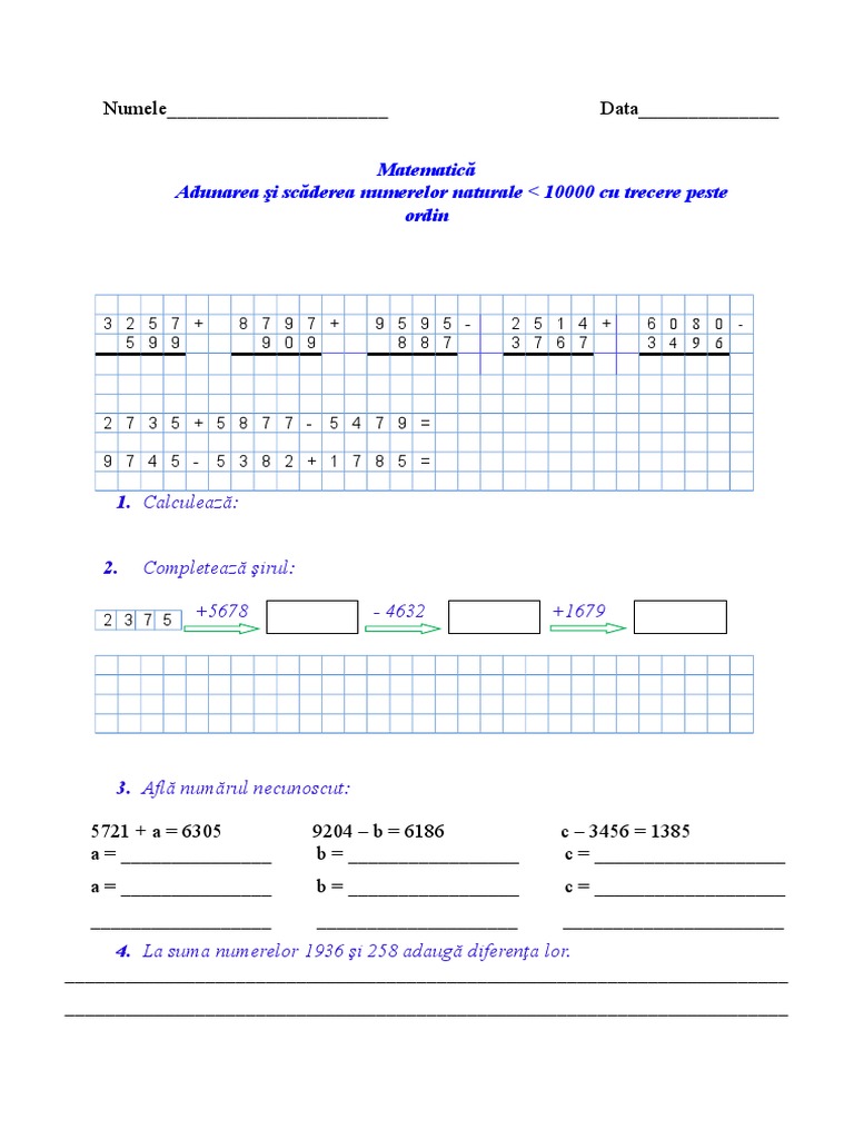 Adunarea si scaderea numerelor naturale de la 0 la 10000 test. Necunoscut probleme care contin terminologie matematica. 0 stele 0 review uri. Adunarea si scaderea numerelor naturale in concentrul 0 1000000. Ideile și materialele pot fi vizualizate aici dacă tot este sezonul dovlecilor am adus ideea și în ora de matematică în care exersăm adunarea și scăderea numerelor naturale până la 10000 cu trecere peste ordin.