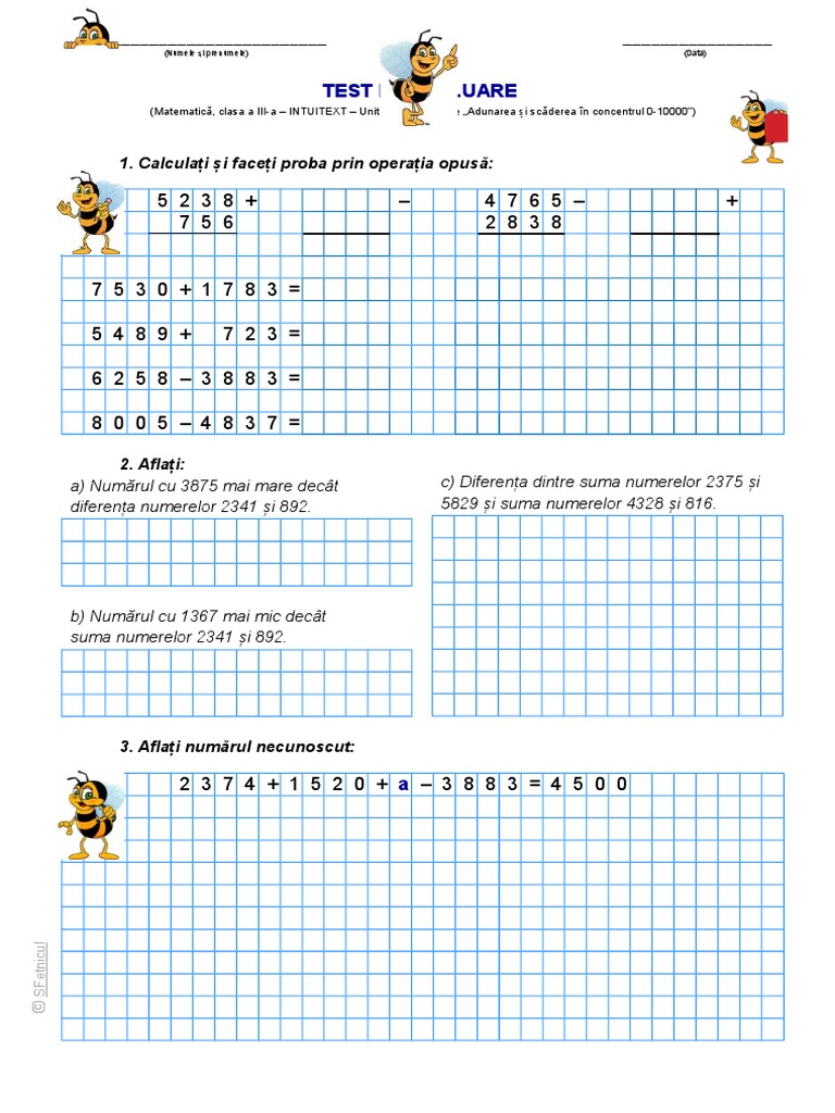 Adunarea Si Scaderea Numerelor Naturale De La 0 La 10000 Test