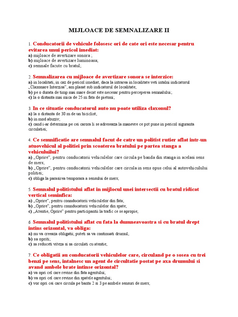 Balansarea în plan vertical a braţului drept al unui biciclist semnifică. Braţul stâng întins orizontal atunci când intenţionează să schimbe direcţia de mers spre stânga sau de a depăşi. B intenția de a opri. Cateva exemple de intrebari.