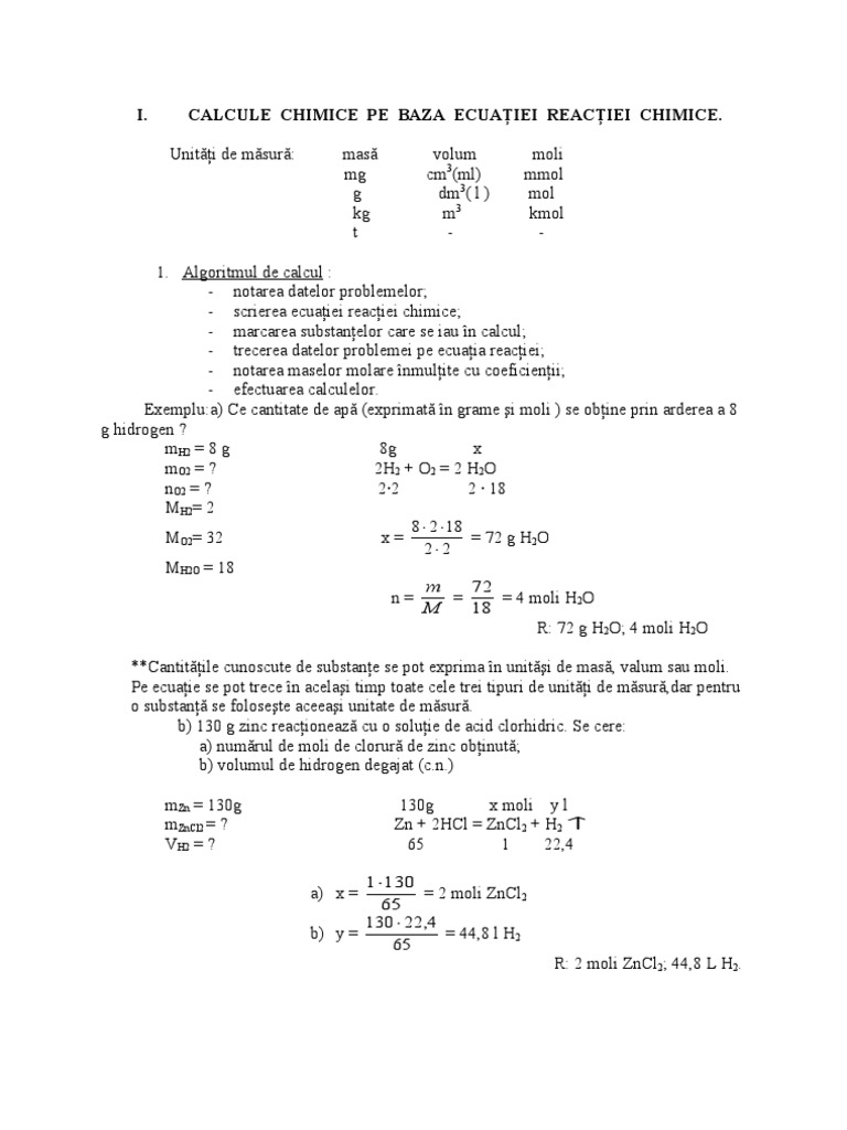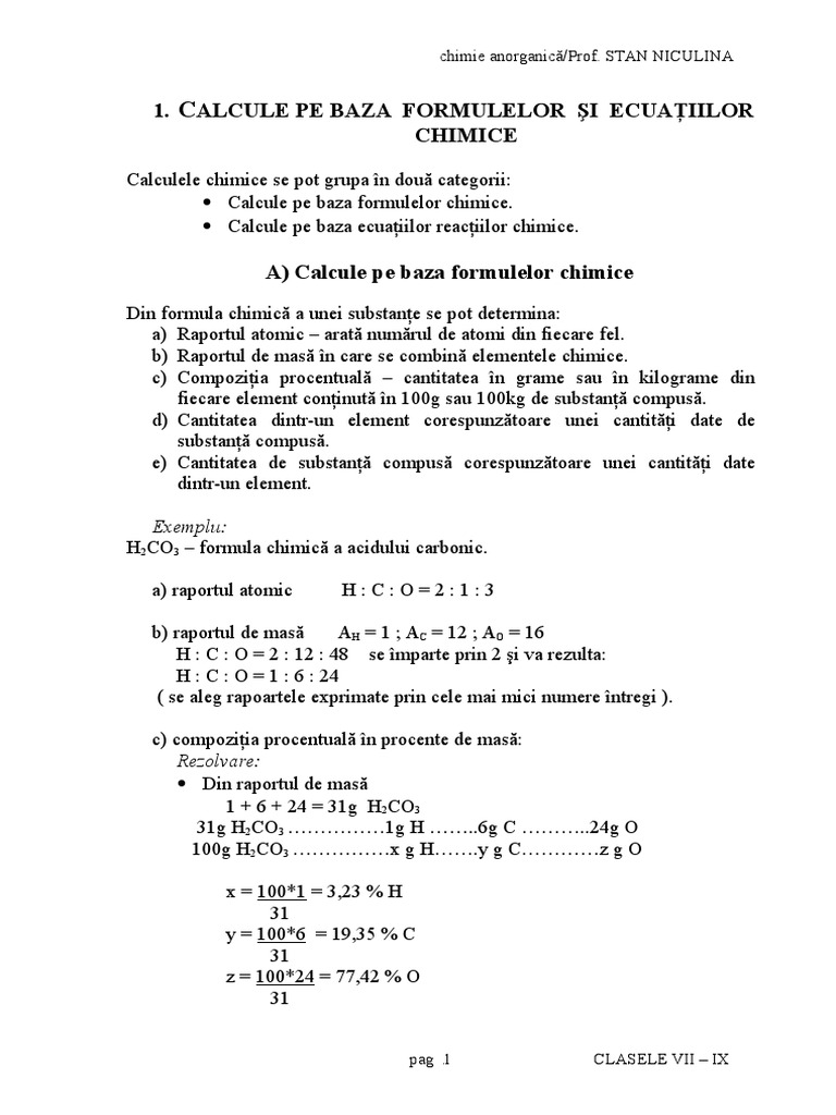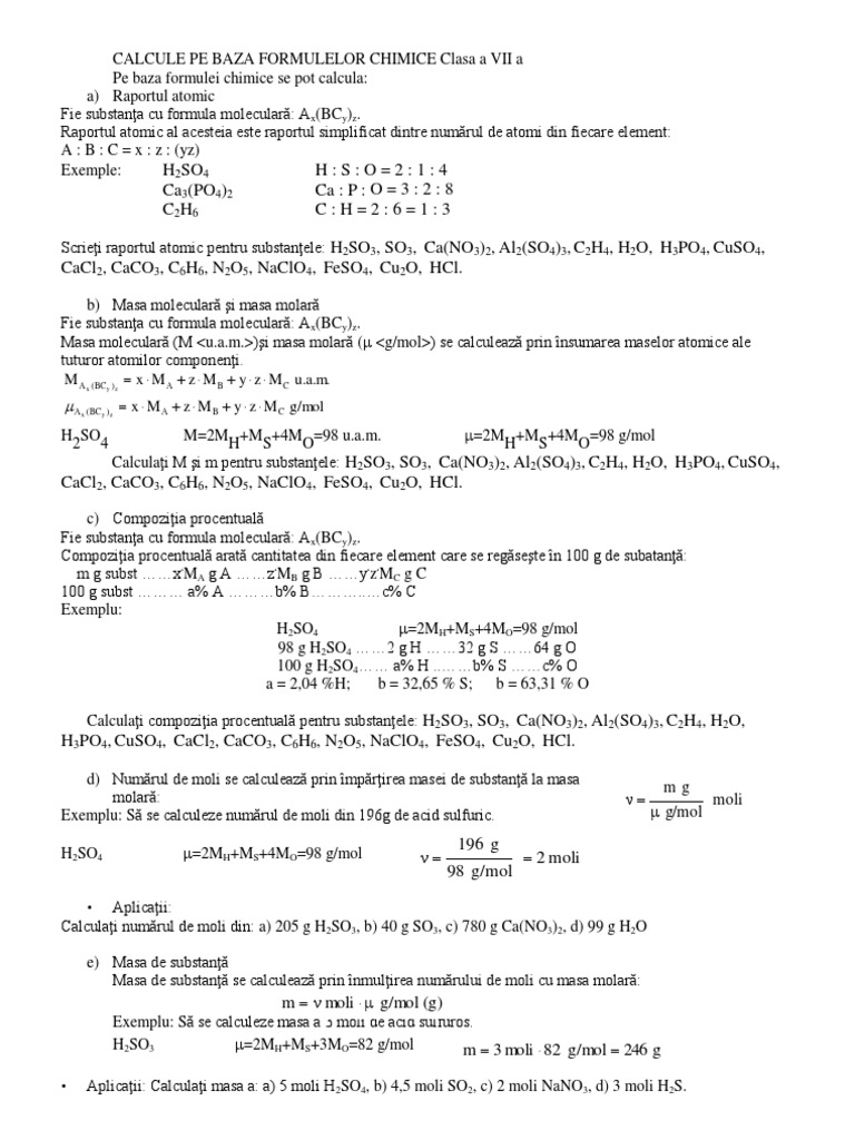 Calcule Pe Baza Formulelor Chimice