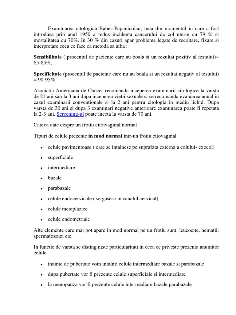Citologie cervico vaginala babes papanicola pagina 3. Nu ai cancer de col uterin. Medicul nu mi a prescris niciun tratament ce pot sa fac. Rezultatul la papanicolau si este bifat asa satisfacator pt evaluare celule endocervicale prezente negativ pt o leziune intraepiteliala sau maligna va rog daca mi puteti spune ce inseamna partea cu celulele endocervicale prezente specific ca am doua nasteri normale una in 2002 si una in 2011 si am varsta de 33 ani multumesc.