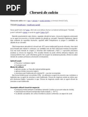 These compounds are mainly used for de icing and dust control. Carbonatul de calciu este răspândit în natură sub formă de minerale. Niciun alt produs nu topeste gheata mai rapid decat aceasta clorura de calciu in formula de fulgi sau granule. O s o o o.