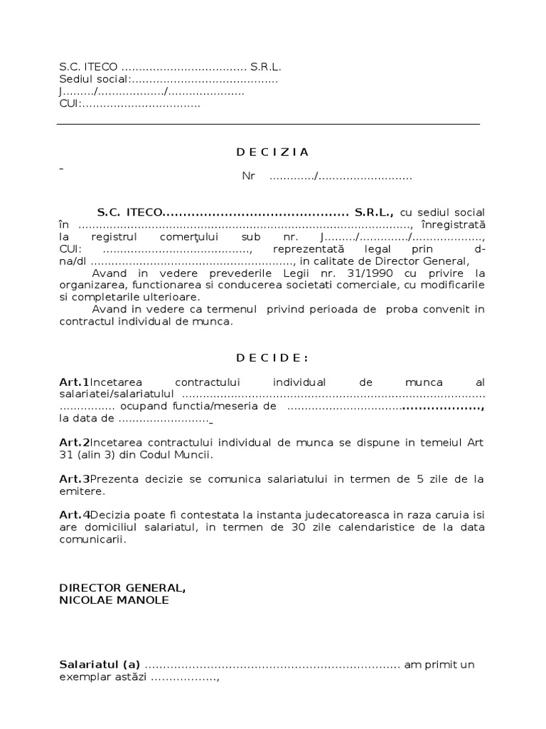 266 275 dispoziţii tranzitorii şi finale. Codul muncii adnotat puteţi accesa gratuit primele 30 de cuvinte din fiecare adnotare dar nu şi sursele acestora. Titlul i dispozitii generale art. Perioada de proba 1 pentru verificarea aptitudinilor salariatului la incheierea contractului individual de munca se poate stabili o perioada de proba de cel mult 90 de zile calendaristice pentru functiile de executie si de cel mult 120 de zile calendaristice pentru functiile de conducere.