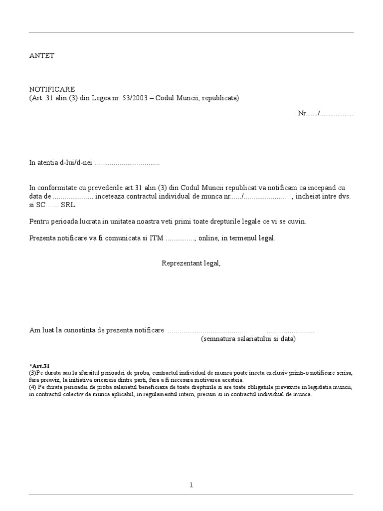 Codul muncii art 31. Codul muncii codul muncii adnotat art. Perioada de proba 1 pentru verificarea aptitudinilor salariatului la incheierea contractului individual de munca se poate stabili o perioada de proba de cel mult 90 de zile calendaristice pentru functiile de executie si de cel mult 120 de zile calendaristice pentru functiile de conducere. 110 titlul iii timpul de munca si timpul de odihna art. 1 9 contractul individual de muncă titlul ii art.