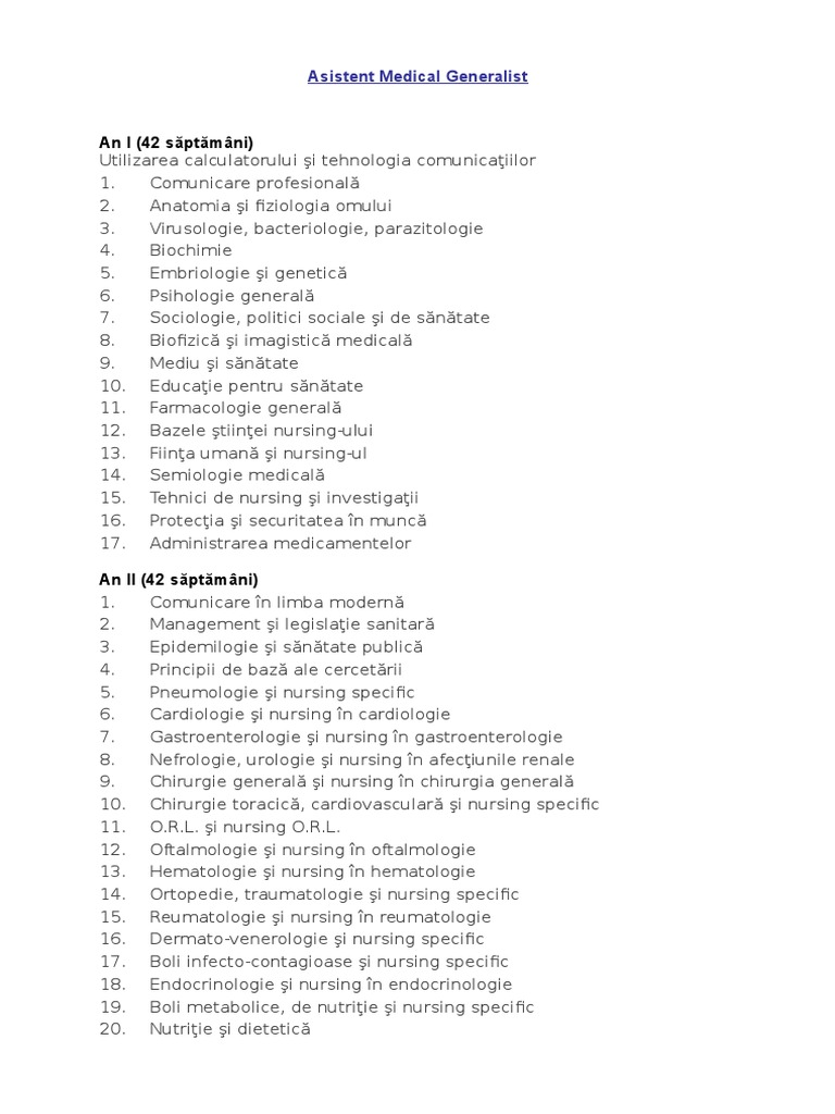 Cursuri referate lucrari de diploma asistent medical generalist anul i ii ii miercuri 11 decembrie 2013 plan de ingrijire pacient cu hipertensiune arteriala partea 1 7. 1 în anul i învățământul clinic are prevăzut 560 de ore pe. Un guest post despre anul 1 al unui viitor asistent medical la o postliceala. 42 săptămâni modul 1.
