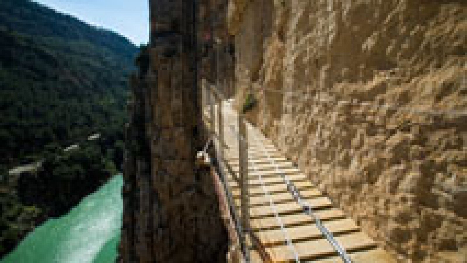 The caminito del rey king s path crosses the guadalhorce river more than 300 feet 100 meters above the canyon floor.