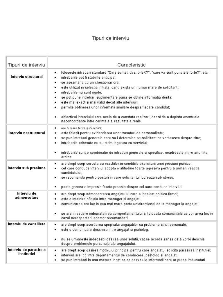 Cu o zi înainte de interviu pregătește ți ținuta accesoriile încălțămintea geanta poți chiar încerca hainele pentru a fi sigură că se potrivesc verifică online sau mergi la adresa unde va avea loc interviul sigur nu vei dori ca înainte de întâlnire cu doar 30 de minute să cauți străzi etaje birouri poți să. Cum te ai descrie prin prisma abilitatii tale de a lucra intr o echipa. Te poti descrie ca o persoana condusa de scopurile pe care vrea sa le atinga. Răspunsurile pe care le dai într un interviu de angajare s ar putea să depindă de jobul pentru care aplici sau de compania în cauză.