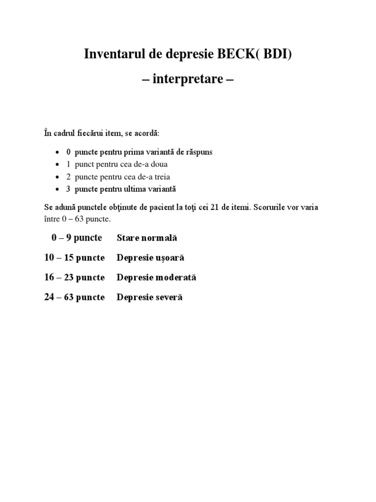 Inventarul de depresie beck beck s depression inventory bdi 21 ian.