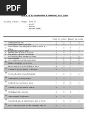 Friedman bdi inventarul de depresie beck cort 2004 itemii care măsoară comportamentul suicidar şi scala disperării beck. Descriere inventarul de depresie beck ediţia a doua bdi ii beck depression inventory second edition este un instrument de auto evaluare alcătuit din 21 de itemi construit să măsoare severitatea depresiei la adulţi şi adolescenţi cu vârsta peste 13 ani. Inventar de depresie beck test profesional. Inventarul de depresie beck.