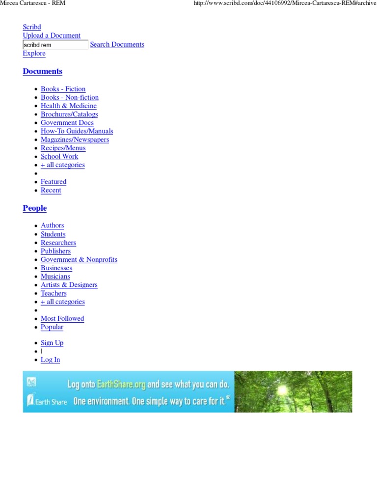 Mircea cartarescu rem pdf. Comentariu literar si referat al cartii rem scrisa de mircea cărtărescu si publicata de acesta in anul 2006. Referat de aproape 3 pagini word si comentariu literar de o pagina a nuvelei rem prin care mircea cărtărescu a reusit sa evidentieze cu ajutorul temei jocului si a creatiei dorinta si neputinta in acelasi timp al omului de a trai in iluzie intr o lume perfecta pe care si o. Cartile sale au fost traduse pana in prezent in limbile engleza germana franceza spaniola portugheza italiana olandeza suedeza norvegiana polona maghiara bulgara. Rezumat al cărții rem scrisă de poetul si prozatorul român mircea cărtărescu.