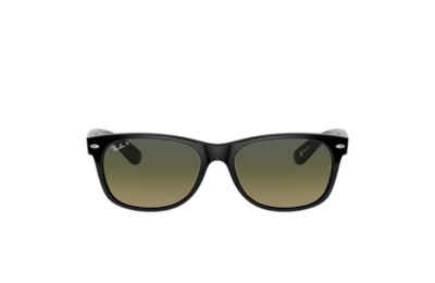 Ray ban rb2132 new wayfarer sunglasses take the iconic shape of the classic wayfarer and infuse a slightly smaller frame and softer eye shape perfect for women and men. These unisex sunglasses are non polarized. Choose classic black frames in a variety of lens treatments including crystal green bi gradient g 15 polarized and mirror styles. Using the same iconic shape as the classic wayfarer these sunglasses offer an updated version that includes a smaller frame and slightly softer eye shape.