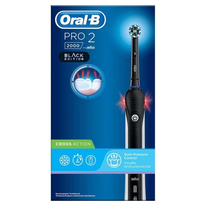 Oral b elektrische zahnbürste pro 2 2000 black edition. Oral b pro 2 2900 ein set aus 2 zahnbürsten unter dem link oben zu finden. Ein rotes signal leuchtet auf und die putzgeschwindigkeit wird reduziert wenn sie. 1 st cross action schwarz 58 47 elektrische zahnürste pro 2 2000 lack edition aufsteckürsten. Mit visueller andruckkontrolle bei otto.