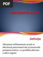 Pancreatita este o îmbolnăvire a pancreasului care constă dintr o inflamaţie rapidă a ţesutului glandular cu modificări degenerative datorită activării în exces a enzimelor şi revărsării lor în ţesutul pancreatic pe care îl distruge treptat. Această afecțiune este tratată cu succes de chirurgii sibieni prin laparoscopie intervenție utilizată în sibiu pentru prima dată în românia în urmă cu 12 ani. Afectiune inflamatorie persistenta a pancreasului pancreatita cronica se caracterizeaza prin fibroza cicatrizarea si modificarea tesutului glandular al pancreasului ceea ce duce la deficiente de secretie a enzimelor digesive si a hormonilor. O altă boală a pancreasului este pancreatita acută sau cronică.