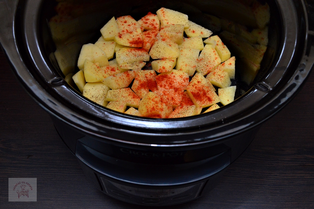 Depinde de cat de frageda e carnea de cat de proaspeti sunt cartofii voi gustati dupa ce a trecut timpul indicat si daca nu sunt preparate le mai lasati 10 20 minute. Ingrediente pentru pui intreg la slow cooker. 2 cepe cativa catei de usturoi 3 4 pulpe de pui condiment smokey rubs kotanyi sau orice arome preferati mod de preparare reteta pulpe de pui la crock pot. Ingrediente pulpe de pui la crock pot.