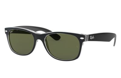 Ray ban rb2132 901 new wayfarer sunglasses 55mm black frame green g 15 lens ray ban rb2132 901 new wayfarer sunglasses are a slightly smaller interpretation on the most famous style in sunwear.
