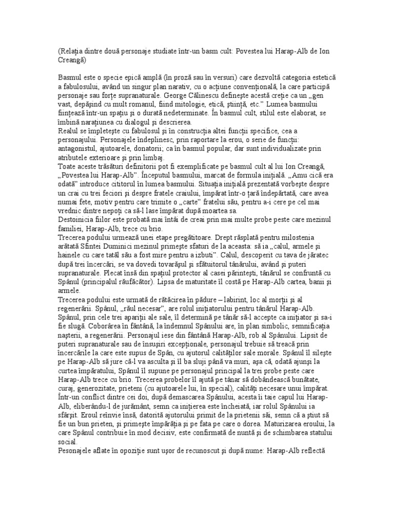 Textul urmărește drumul inițiatic al protagonistului și dificultățile inerente acestuia. Relația harap alb spân povestea luiharap alb. Povestea lui harap alb de ion creangă galerie basmul este o specie epică amplă în proză sau în versuri care dezvoltă categoria estetică a fabulosului având un singur plan narativ cu o acţiune convenţională la care participă personaje sau forţe supranaturale. Share via email report story scrie un eseu de 2 3 pagini despre relatiile dintre doua personaje care apartin unui basm cult studiat.