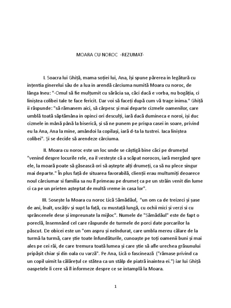 Dar voi sa faceti dupa cum va trage inima si dumnezeu sa va ajute si sa va acopere cu aripa bunatatii sale. Rezumat moara cu noroc de ioan slavici nuvela este de factura clasica avand o structura viguroasa in care fiecare episod aduceelemente esentiale si absolut necesare pentru firul epic. Moara cu noroc de ioan slavici i omul sa fie multumit cu saracia sa caci daca e vorba nu bogatia ci linistea colibei tale te face fericit. Read rezumat from the story moara cu noroc rezumat by paandaa1 with 115 072 reads.