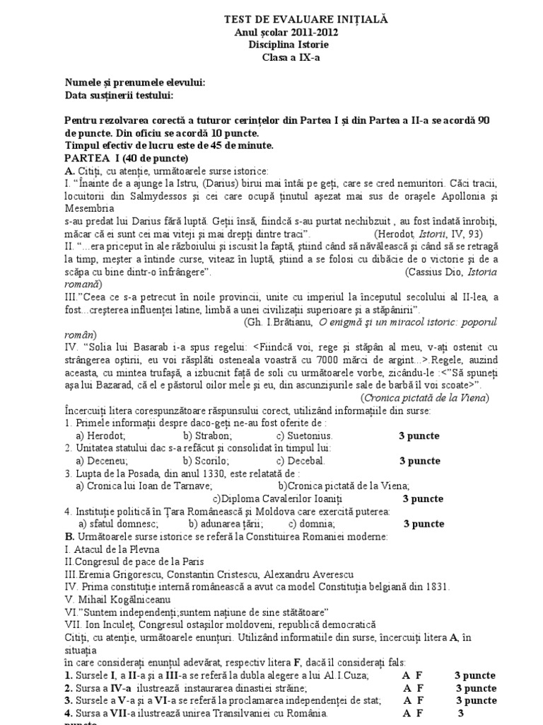 123 din 2005 precum şi prin legea nr. Test initial clasa a ix a fizica. Evaluare inițială la fizică clasa 9 rm cu barem de notare 2 variante.
